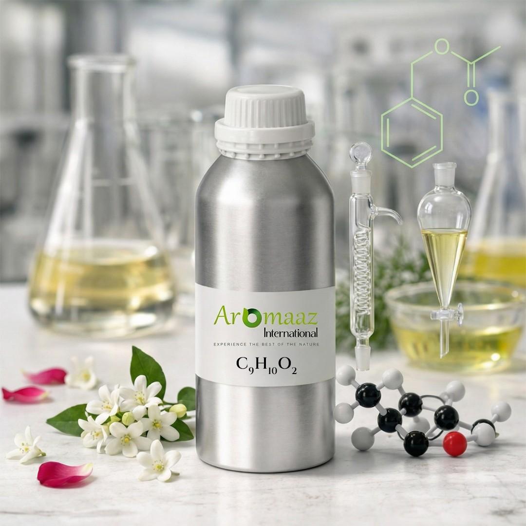 Benzyl Acetate is a commonly used aromatic substance featuring sweet, floral, and pleasant odour that reminds of jasmine. It is found naturally in the essential oils of jasmine and ylang-ylang and is generally produced industrially by controlled chemical synthesis methods. Benzyl Acetate manufacturers use high levels of processing methods to ensure uniform purity and quality of fragrances. It is widely used in the fragrance and flavour industry because of its stability and attractive scent profile. Besides, the compound has mild antimicrobial properties, and is used in perfumery formulations.