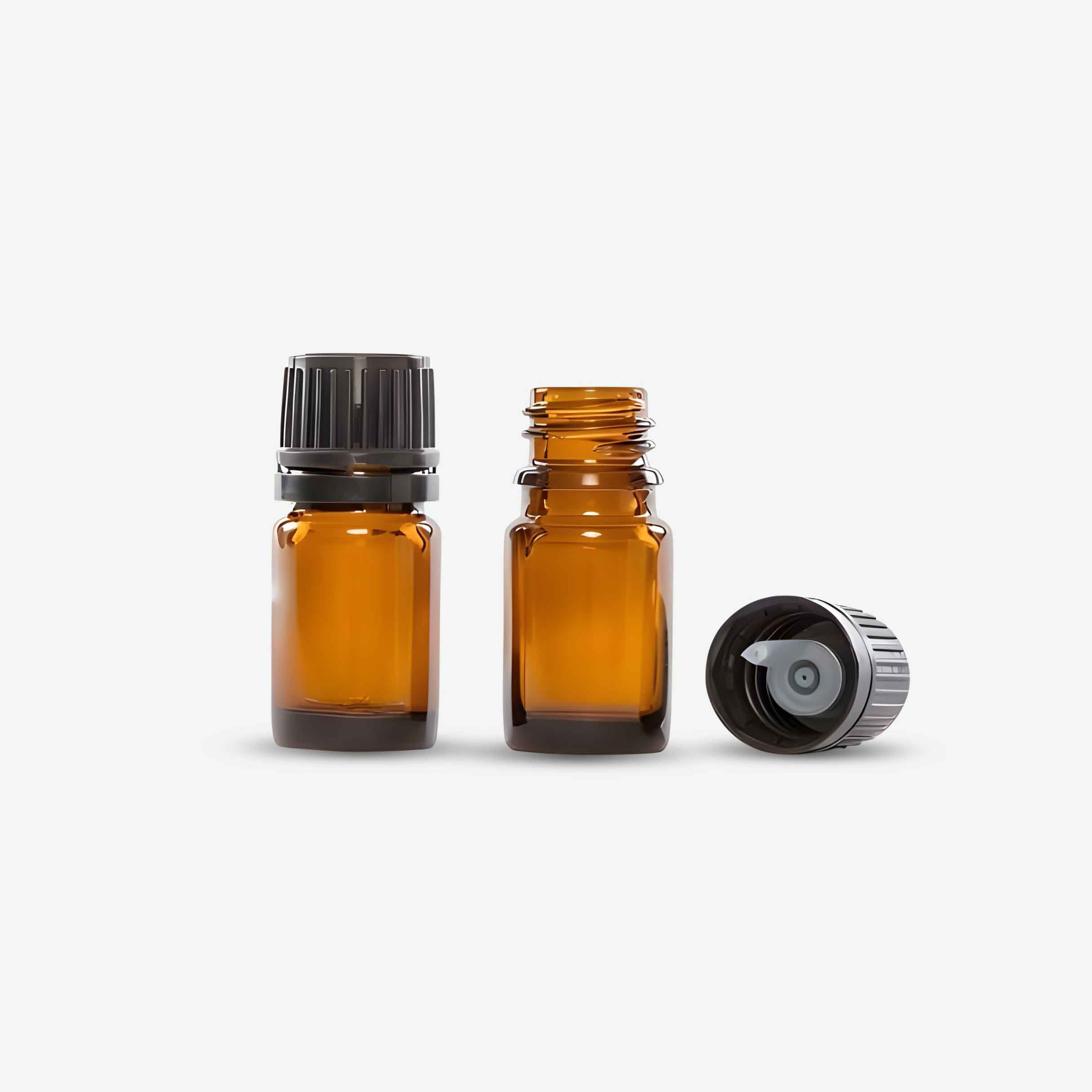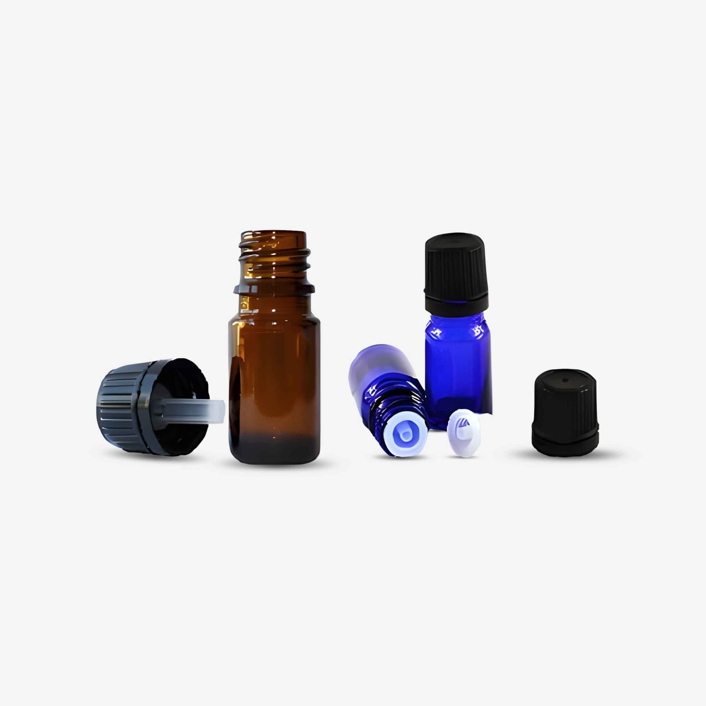 Essential Oil/ in 5 ml. All packed in a 5 ml amber glass/cobalt blue bottle. With a euro dropper and sealable cap. Label of your design. Labeling and filling and complete packaging.